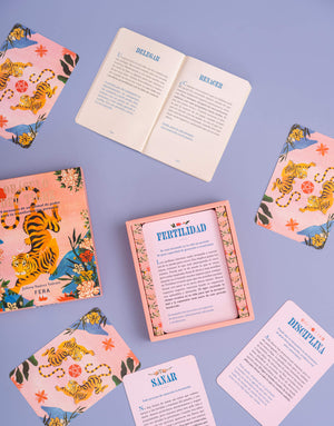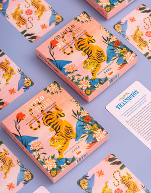 Este oráculo se compone de 44 cartas para la transformación personal. Fueron mensajes que canalizó Julieta Suárez Valente, astróloga y tarotista a través del tigre Oliver, su animal de poder. Estos mensajes no quedaron en meras palabras : Julieta las ha experimentado en cuerpo y alma a lo largo de todo su camino. En el dossier (pequeño libro) encontrarás ejemplos personales, anécdotas y confesiones relacionadas a cada una de las 44 propuestas de las cartas.