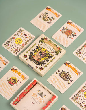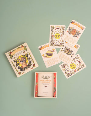 Este oráculo contiene 45 cartas ilustradas con rituales, recetas e intenciones para pedir asistencia mágica.