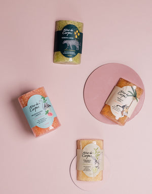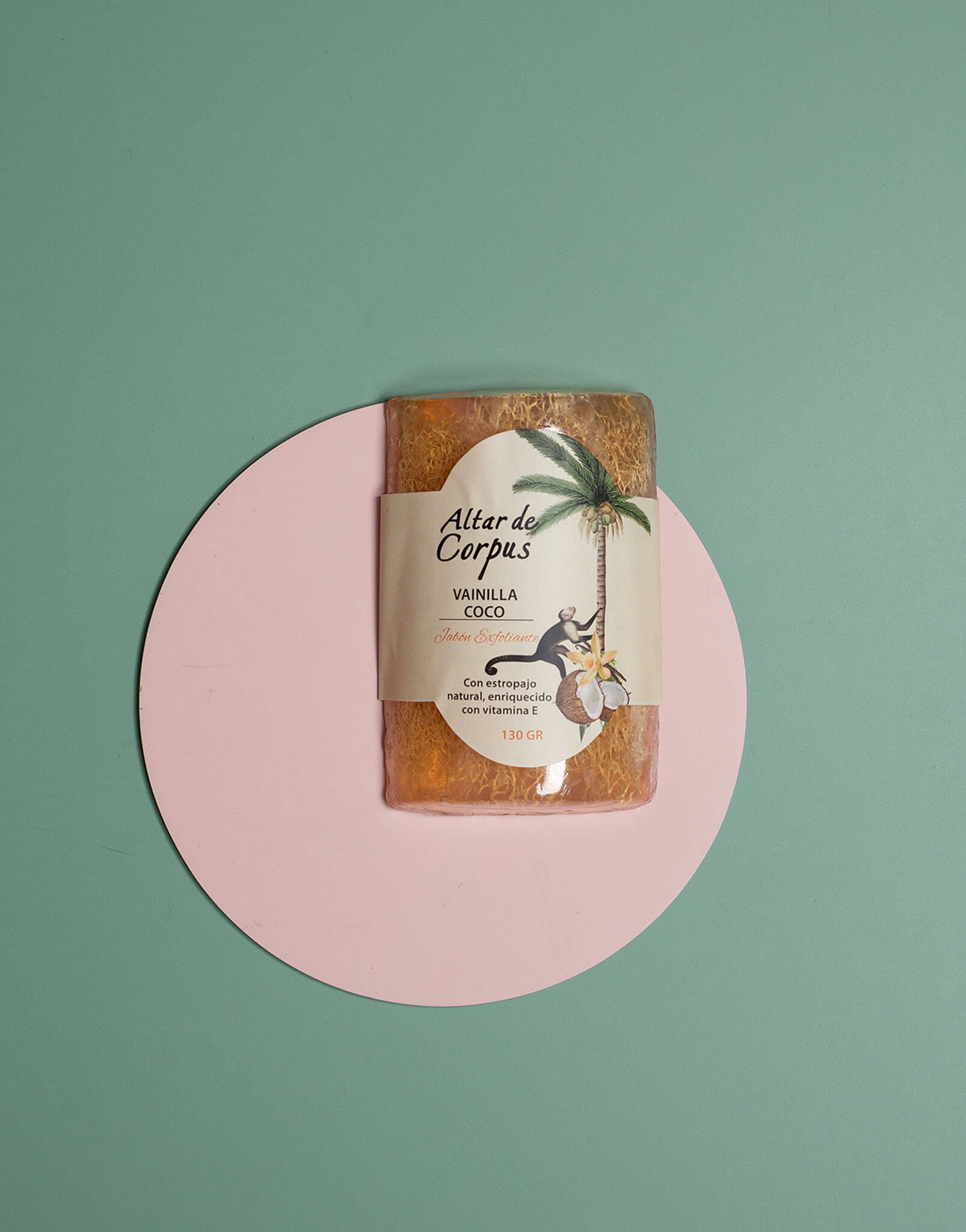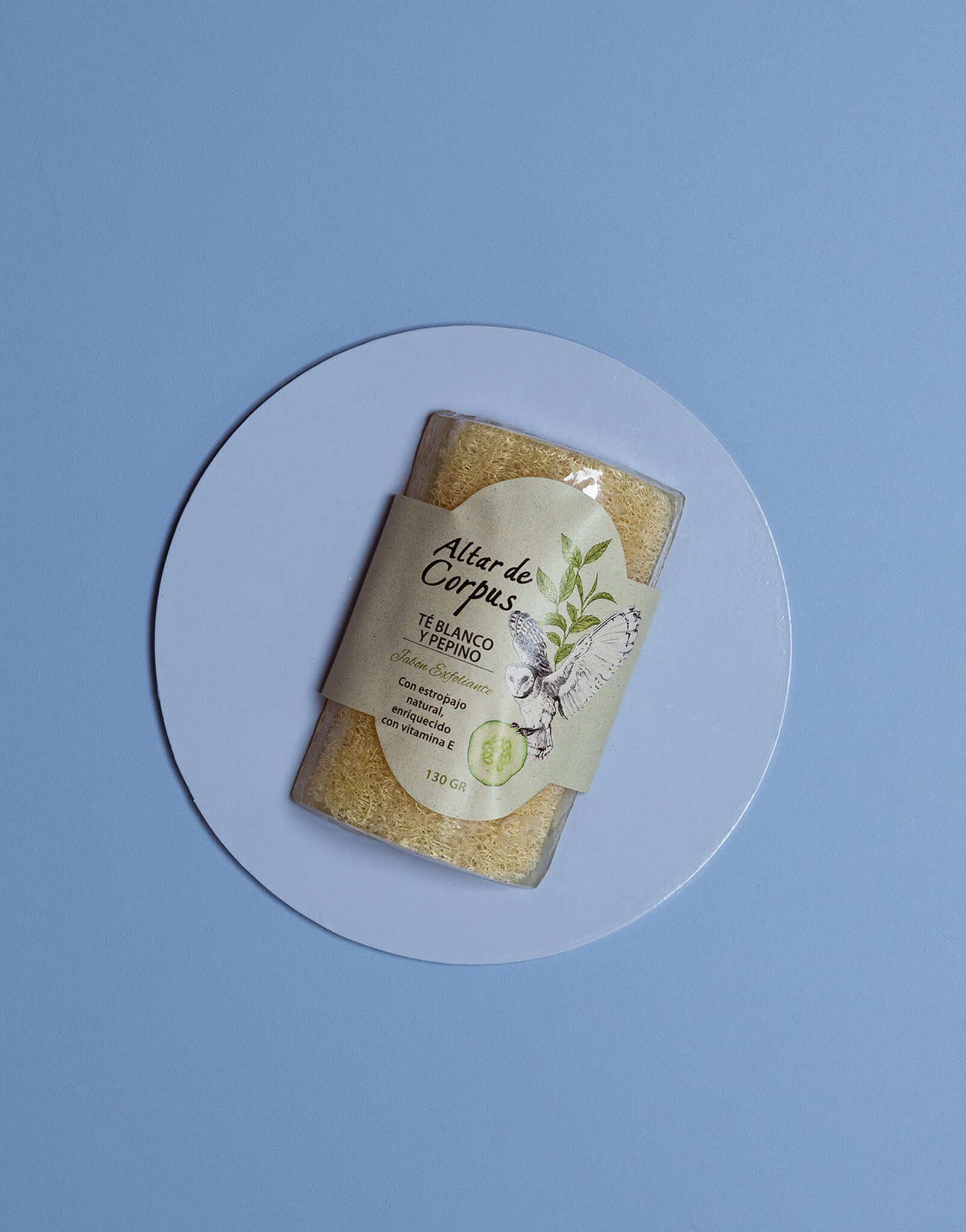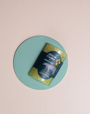 Jabón con estropajo natural