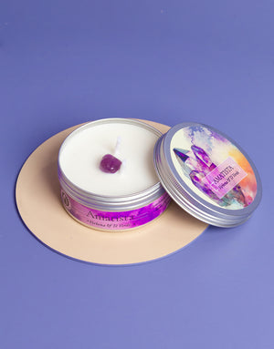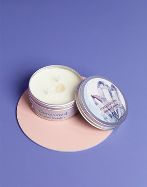 Enciende tu vela y deja que el fuego limpie y la recargue de energía tu cristal, cuando la cera se haya consumido totalmente, tienes una piedra natural intencionada y preparada especialmente para tí.