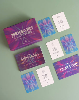 En Mensajes del Universo encontrarás un conjunto de 78 cartas, 39 mensajes y 39 respuestas, 6 tarjetas de agradecimiento y un libro que te ayuda a entender los mensajes. Haz tu ritual diario para encontrar el mensaje que el universo tiene para ti.