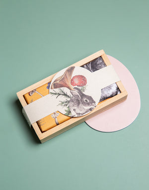 Esta cautivadora caja de regalo ofrece un ritual único de cuidado corporal con un jabón artesanal enriquecido con Manteca de Karité y una toalla.
