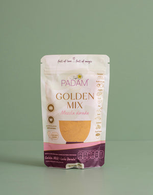 Ingredientes: Cúrcuma, Aceite de Coco en polvo, Jengibre, Maca, Canela, Cardamomo y Pimienta Negra.
