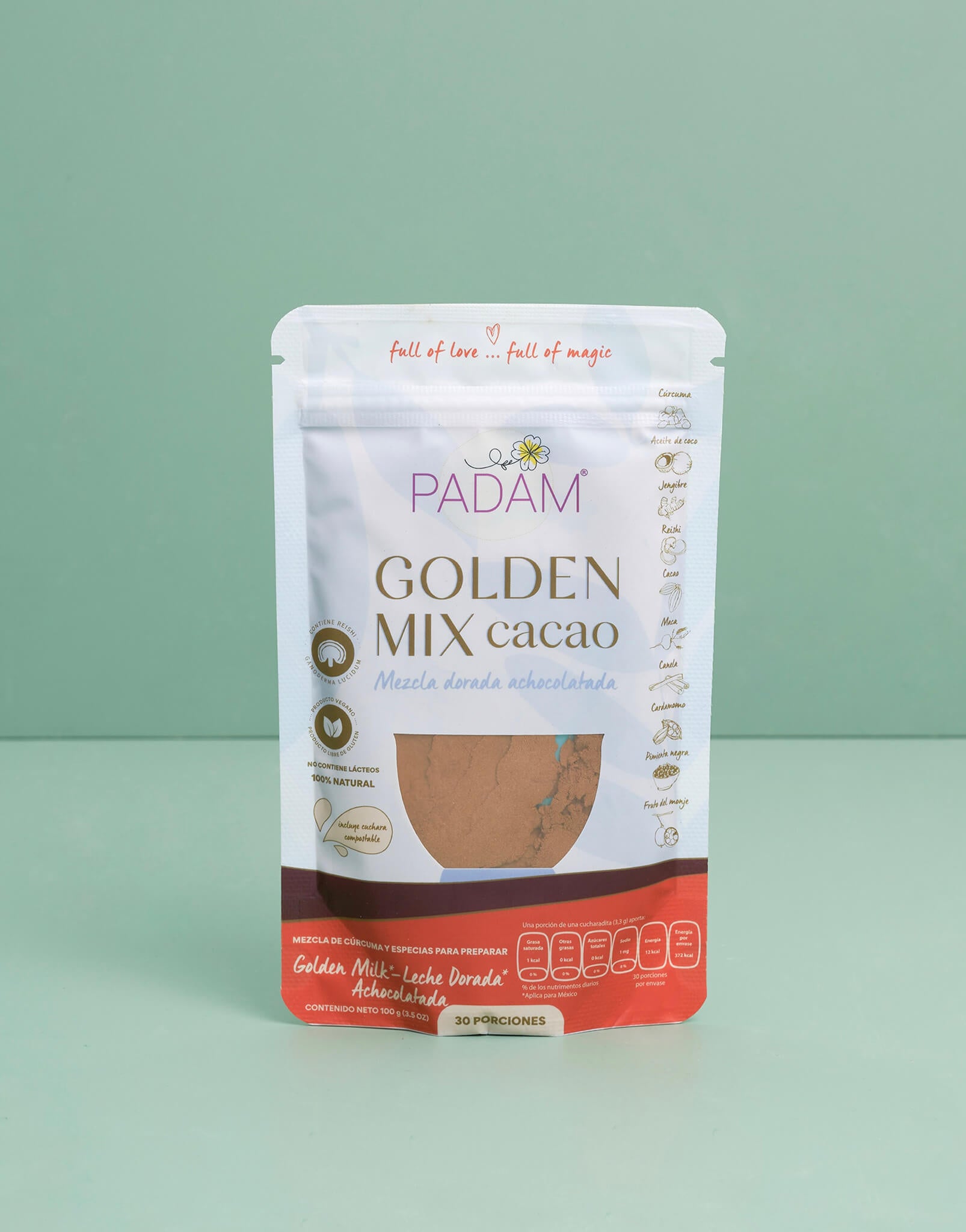 Ingredientes: Cúrcuma, Aceite de Coco en polvo, Cacao, Jengibre, Maca, Canela, Cardamomo, Pimienta Negra y Fruto del Monje (Monk Fruit).