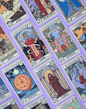 - Un libro con descripciones de las 78 cartas y su conexión astrológica.