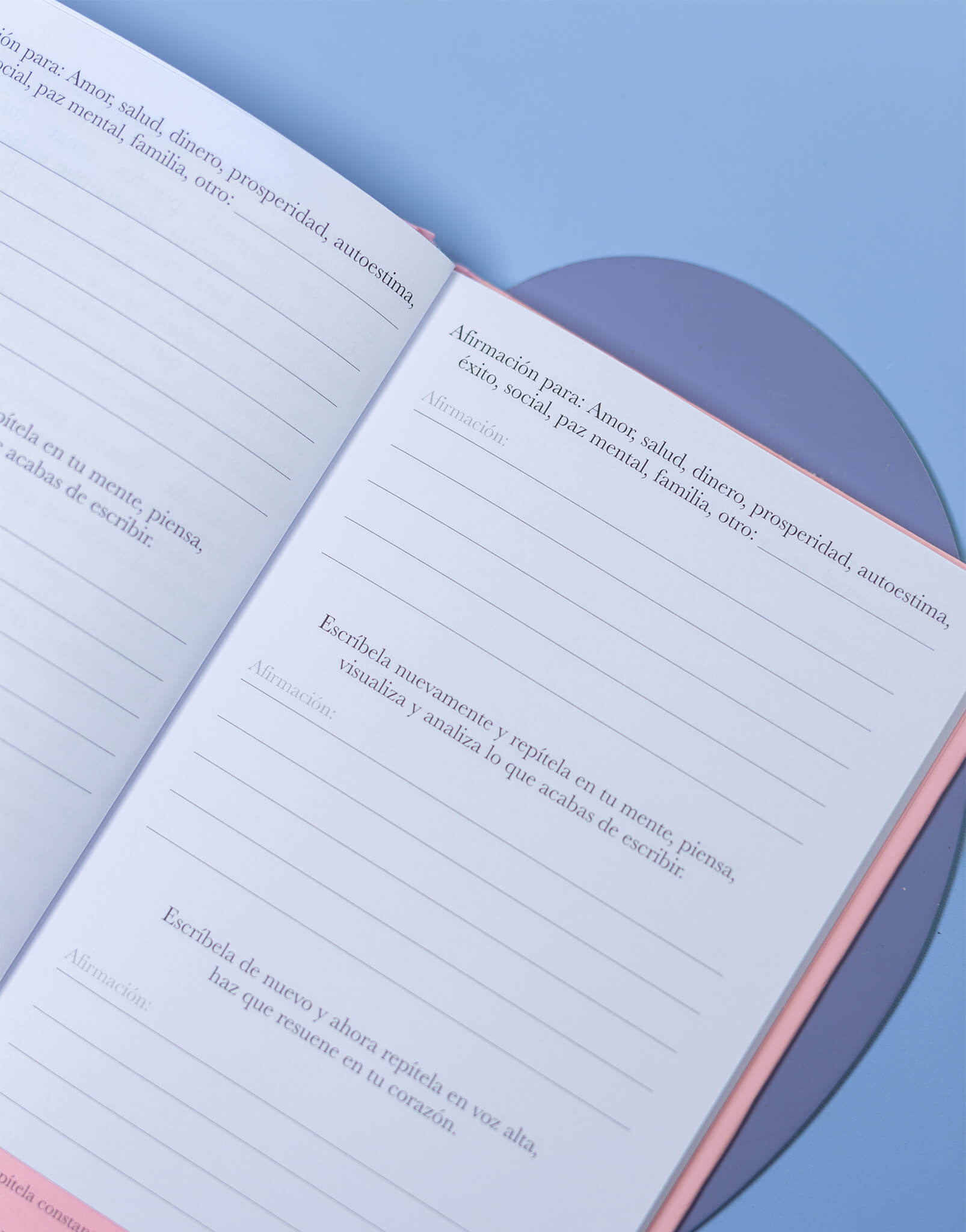 En este diario tendrás un espacio para reflexionar, analizar y visualizar todas esas afirmaciones que te ayudarán a transformar tu vida. Sigue todos los pasos y permite que las afirmaciones resuenen en tu corazón.