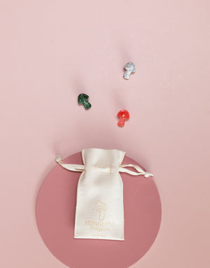 Contenido: bolsita de tela + 3 honguitos mágicos (2 cm x 1.5 cm)