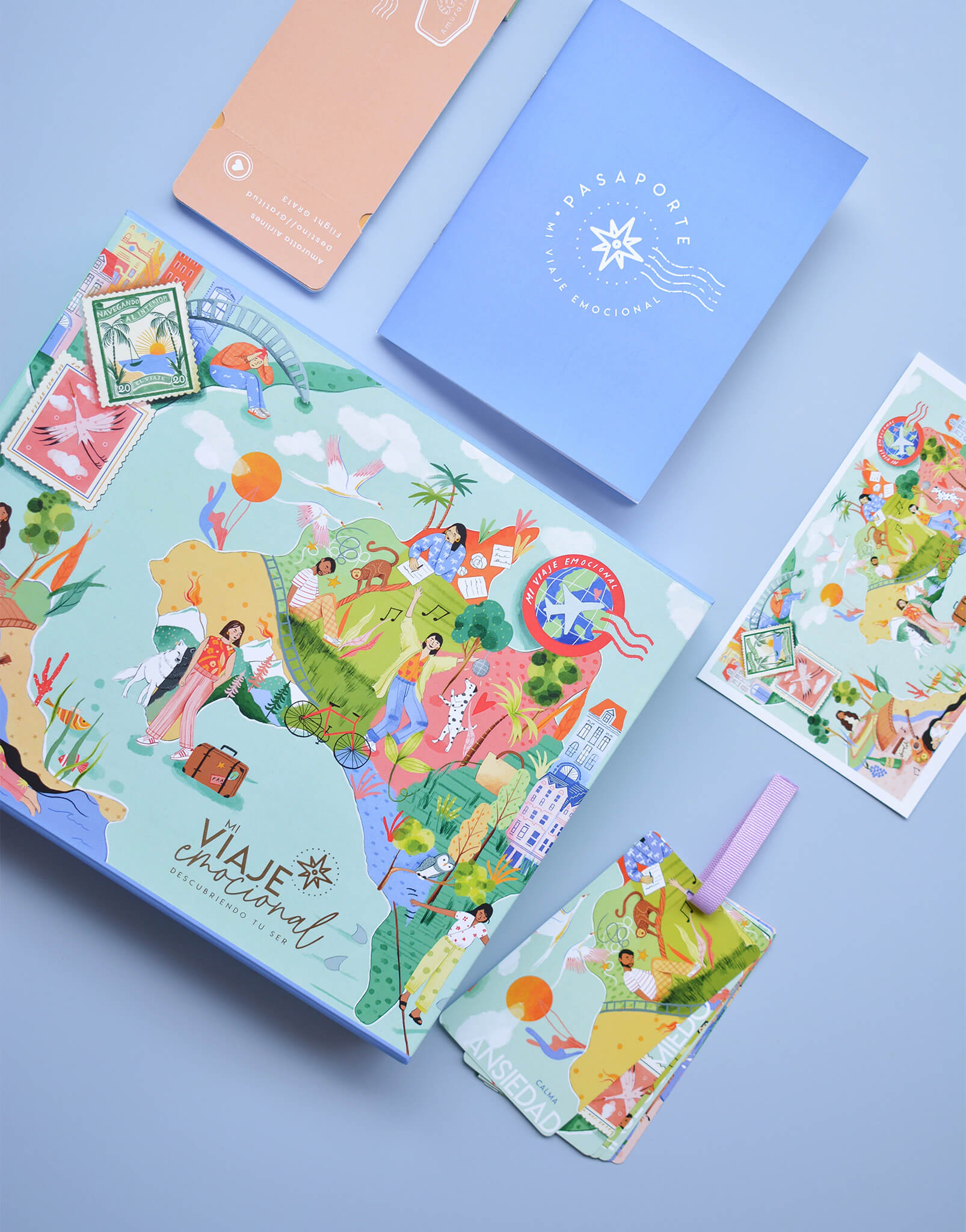 - 8 destinos emocionales: o sea 8 emociones con su mensaje o descripción. Estos vienen en forma de marca maletas.
