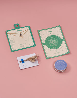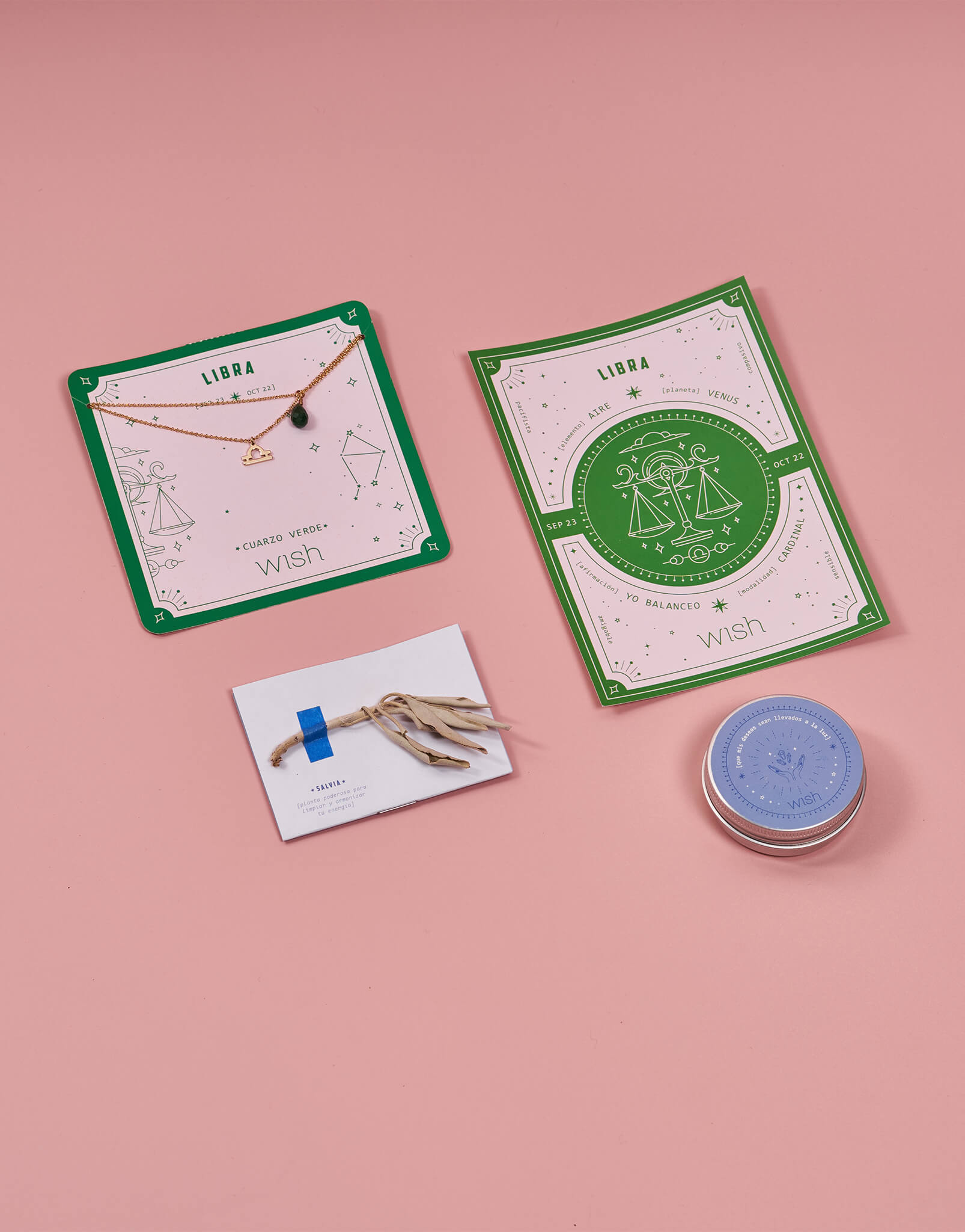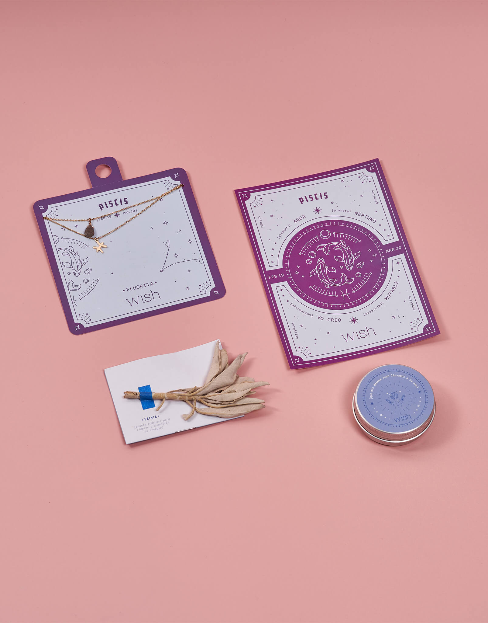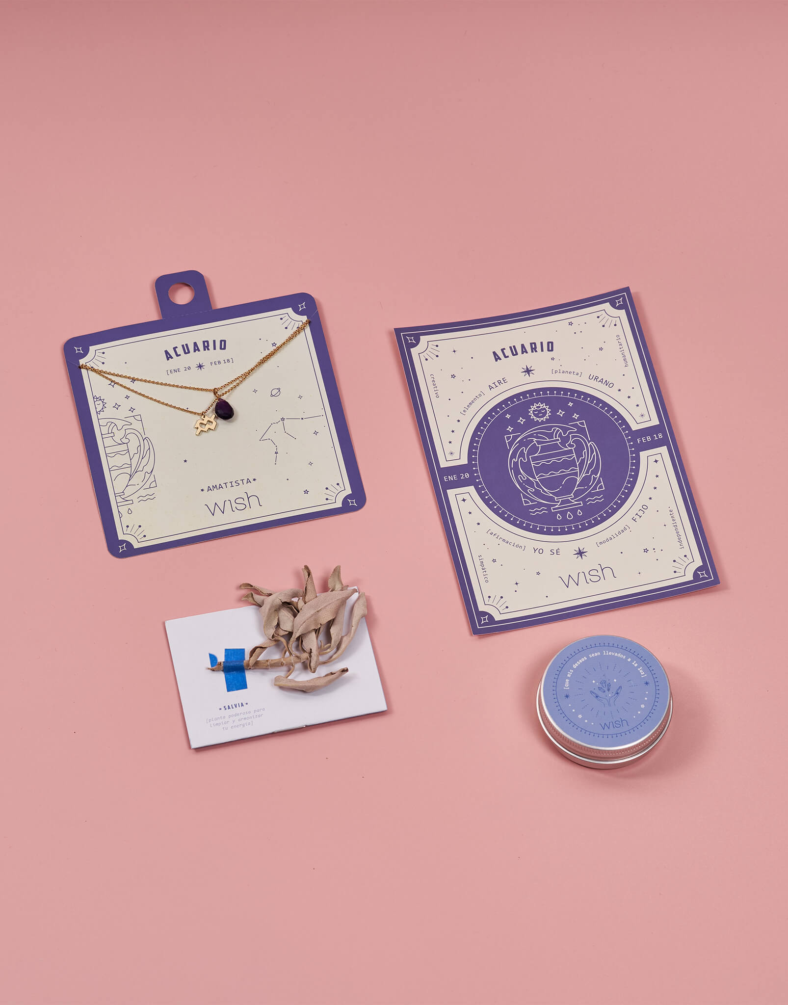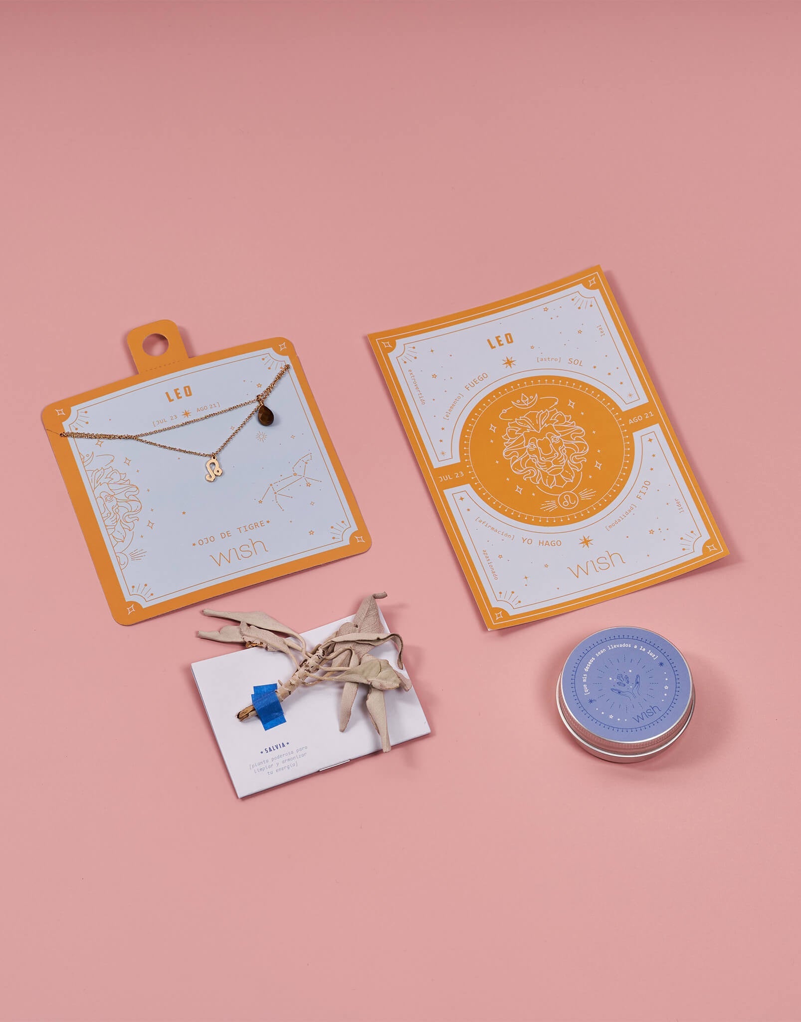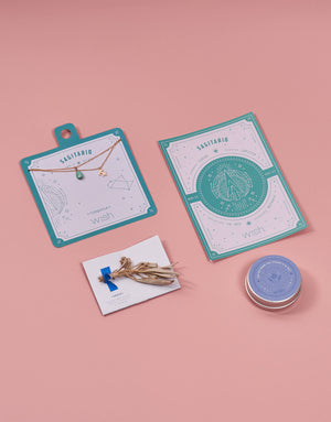 4. Hojita de salvia: planta poderosa para limpiar y armonizar tu energía.5. Postal para la visualización: Diseñada con los símbolos de poder que corresponde a tu signo y con los rasgos de luz que has heredado de los astros.